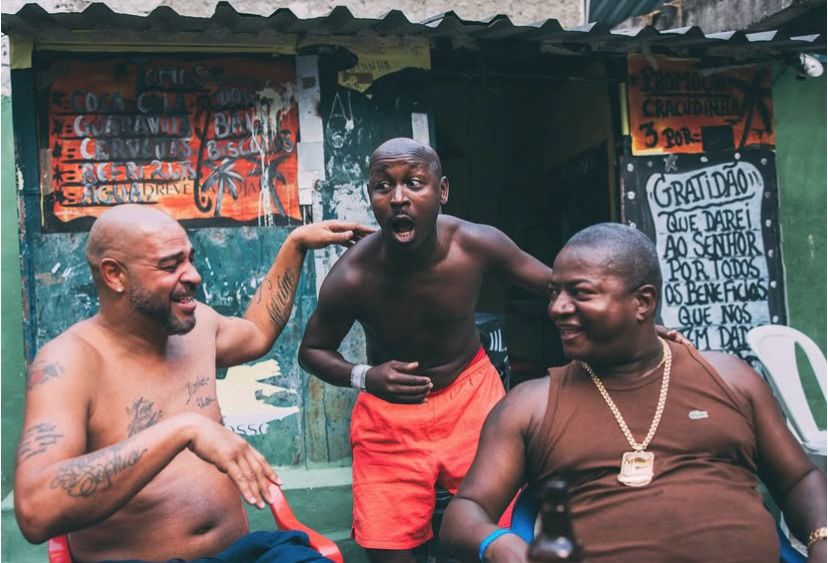 Adriano Imperador almoça quentinha com amigos na comunidade Vila Cruzeiro