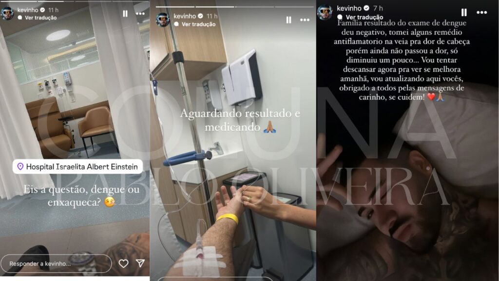 Apesar de ter tentado aliviar os sintomas com medicação em casa, Kevinho admitiu que a situação saiu do controle. “Estava com preguiça de ir ao hospital”, confessou, mas a dor persistente o obrigou a buscar atendimento de emergência. No hospital, a equipe médica suspeitou de dengue, e o cantor passou por uma série de exames para confirmar o diagnóstico.