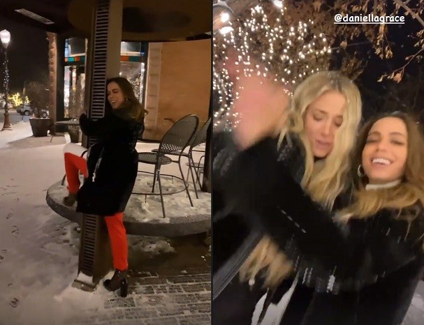“Está nevando tanto! Eu amo! É tão romântico! A gente deveria estar em momentos românticos agora. Está nevando, tudo fica tão romântico, mas nós não temos namorados!”, explicou Anitta para os fãs nos Stories, em inglês.