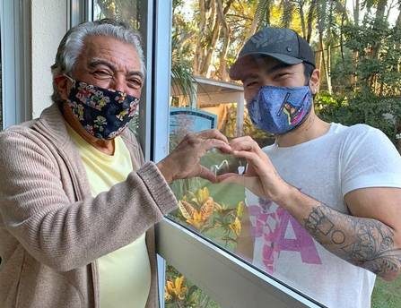 “Fui visitar o papai. Nossa relação tem sido assim, atrás dos vidros. Mas o nosso coração está ali, juntinho! ” escreveu o filho do Maurício num registro, feito pela mãe e publicado na web. Na imagem os dois usam máscara e, mesmo com o vidro, as mãos dos dois se unem e formam um coração.