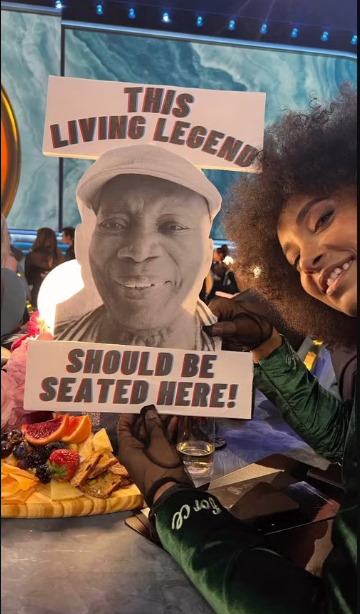 “Então, Milton não ganhou um assento nas mesas da cerimônia deste ano. Isso não me pareceu certo. Não estou falando de ganhar um Grammy. Estamos celebrando a gloriosa vitória de Samara Joy. Estou falando de um assento físico… Aqui nesta mesa onde estou sentada. Estou indignada que essa lenda viva não tenha sido considerada importante o suficiente para se sentar entre os A-listers, ou seja lá como as mesas no salão principal são organizadas. Então, tive que trazê-lo comigo. Gritem se nos virem na TV!”, ainda escreveu Esperanza.