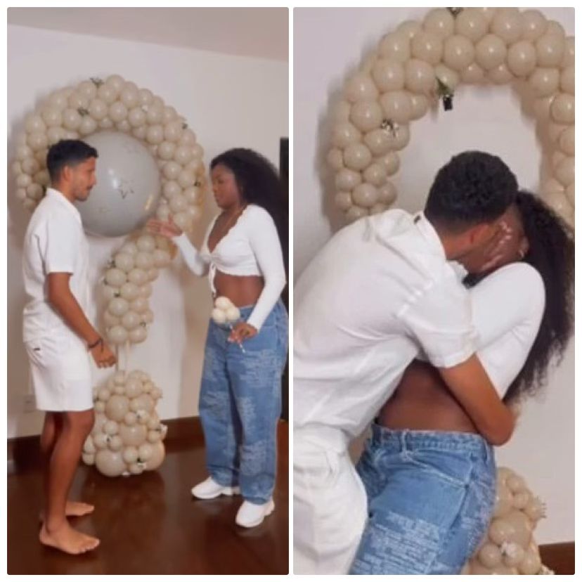 No vídeo, IZA e Yuri aparecem ao lado de um grande ponto de interrogação formado por balões. Em seguida, eles estouram o maior deles, revelando uma chuva de papel picado rosa, confirmando que estão grávidos de uma menina que se chamará Nala.