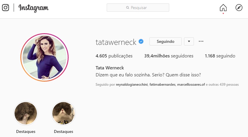 5 – Tata Werneck – 39,4 milhões de seguidores