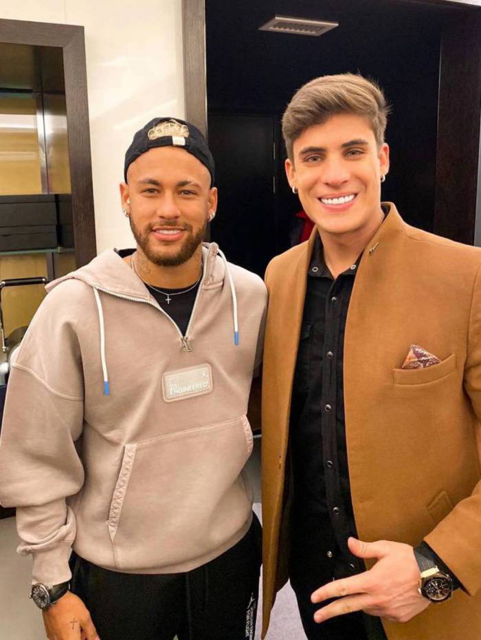 Tiago e Nadine se conheceram quando ele esteve na festa de aniversário do Neymar, em Paris. O rapaz é tão fã do enteado famoso que fez uma tatuagem na mão igual á do jogador.