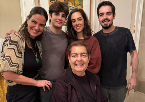 Quatro meses após transplante, Faustão aparece em foto com a família