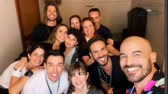 Ator prestigiou apresentação da amada e posou com amigos e familiares dela