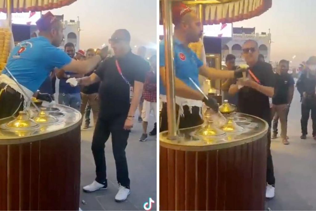 [VÍDEO] Galvão Bueno sofre com sorveteiro engraçadinho no Catar