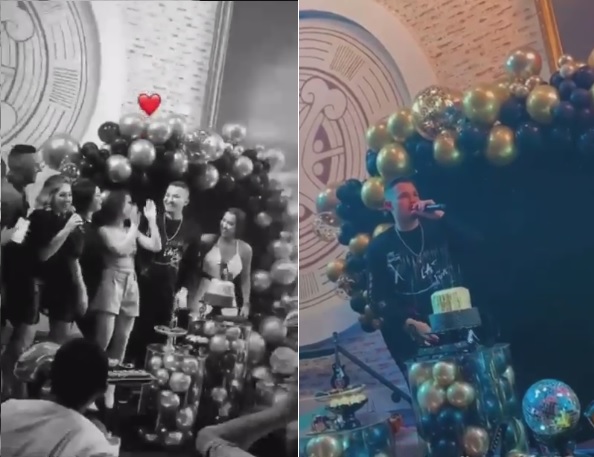 Nas redes sociais, amigos do cantor divulgaram vídeos da comemoração que aconteceu num espaço fechado, teve shows e convidados sem máscaras e sem distanciamento social.