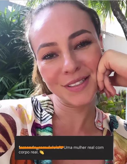“Vocês acharam que eu estava de barriga? Quer saber, com barriga ou sem barriga eu estava me achando linda, é isso que importa. E vem cá, gente, nem toda barriga é de bebê, não. Mas o que eu queria falar é que a gente tem que se cuidar, sim, isso faz parte, mas, principalmente, pra gente se sentir saudável, bem e linda. E não ficar linda. E o que eu quero para o meu Carnaval é ter disposição, ter animação. E fica um alerta aqui, falar do corpo do outro é uma coisa bem séria. Então, vamos tentar não fazer isso? E, para finalizar, eu queria mandar um beijo para todos vocês, agradecer os elogios. E dizer que: uma mulher com corpo real somos todas nós”, finalizou ela.