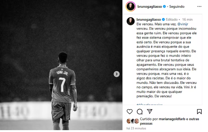 Vini Jr não ganha Bola de Ouro e famosos saem em defesa do jogador