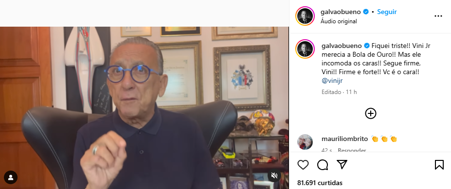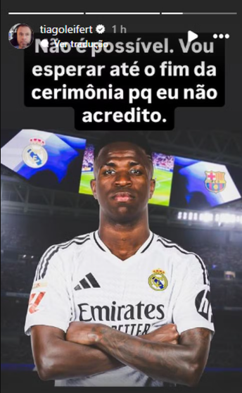 Esta poderia ser a primeira bola de ouro do atleta da Seleção Brasileira e do Real Madrid, da Espanha, que não compareceu ao evento. Nas redes sociais, famosos lamentaram que o brasileiro não levou a Bola de Ouro.