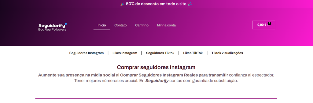Seguidorify é, também, um site que não é do Brasil, apesar de contar com apresentação em português brasileiro. Assim, os variados pacotes de followers contam com números como 1000, 2000, 5000, 10 mil seguidores, entre outros, indo até 75 mil followers.