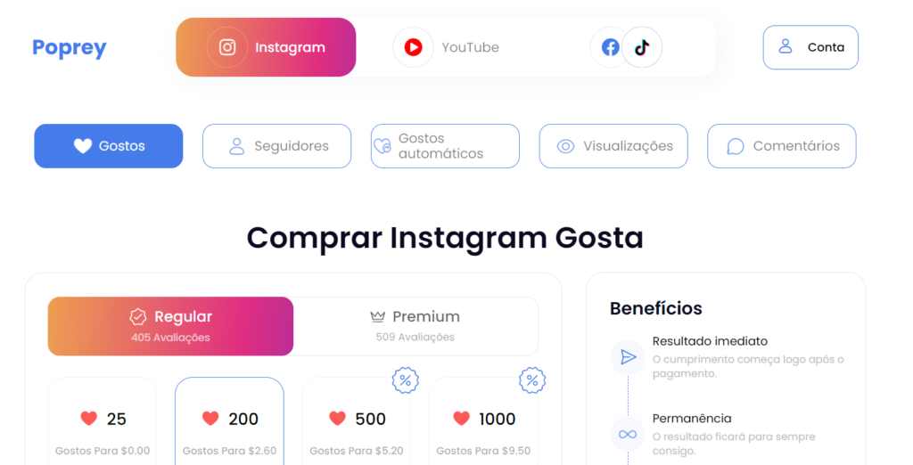 Mas há a possibilidade de comprar, com Poprey, seguidores regulares ou Premium. Deste modo, ainda dá pra escolher seguidores de melhor qualidade para sua conta no Instagram. E, nisso Poprey entrega bem.
