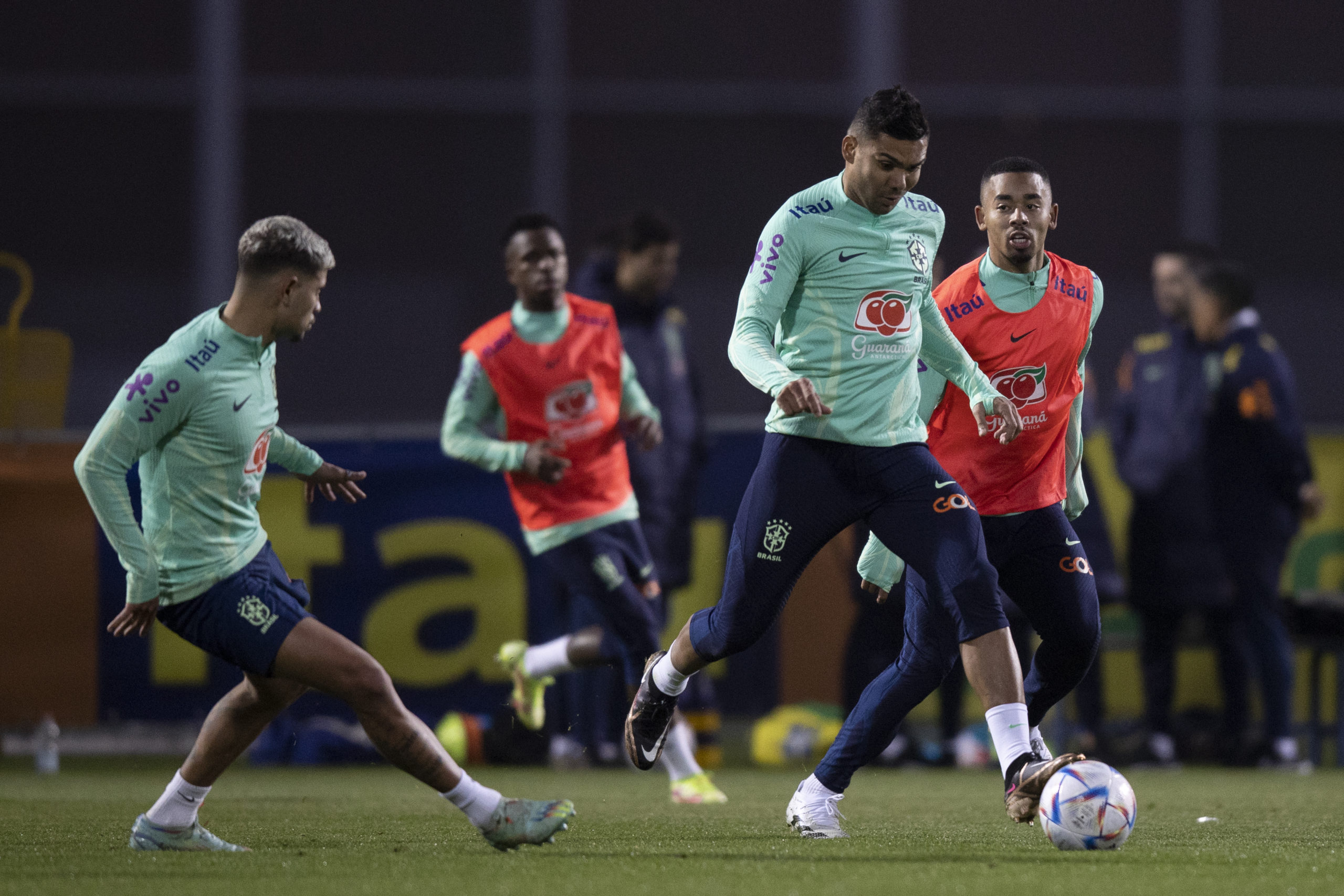 Na montagem do treinamento, o treinador mesclou duas equipes, com formações espelhadas. A primeira ficou assim: Ederson; Danilo, Militão, Thiago Silva e Alex Telles; Fabinho, Fred e Neymar; Raphinha, Vini Jr e Gabriel Jesus. No decorrer do trabalho, Pedro e Bruno Guimarães entraram nos lugares de Jesus e Fred.