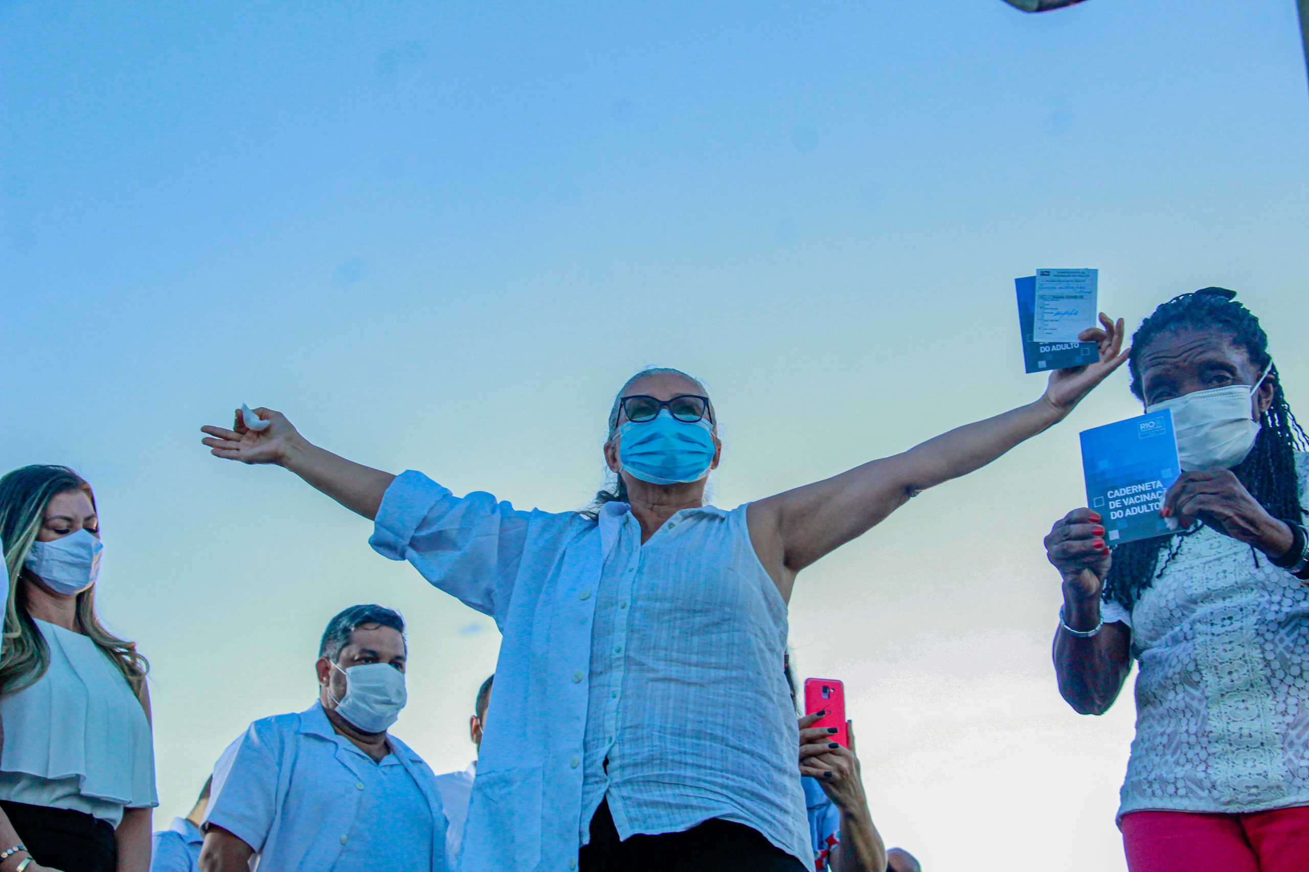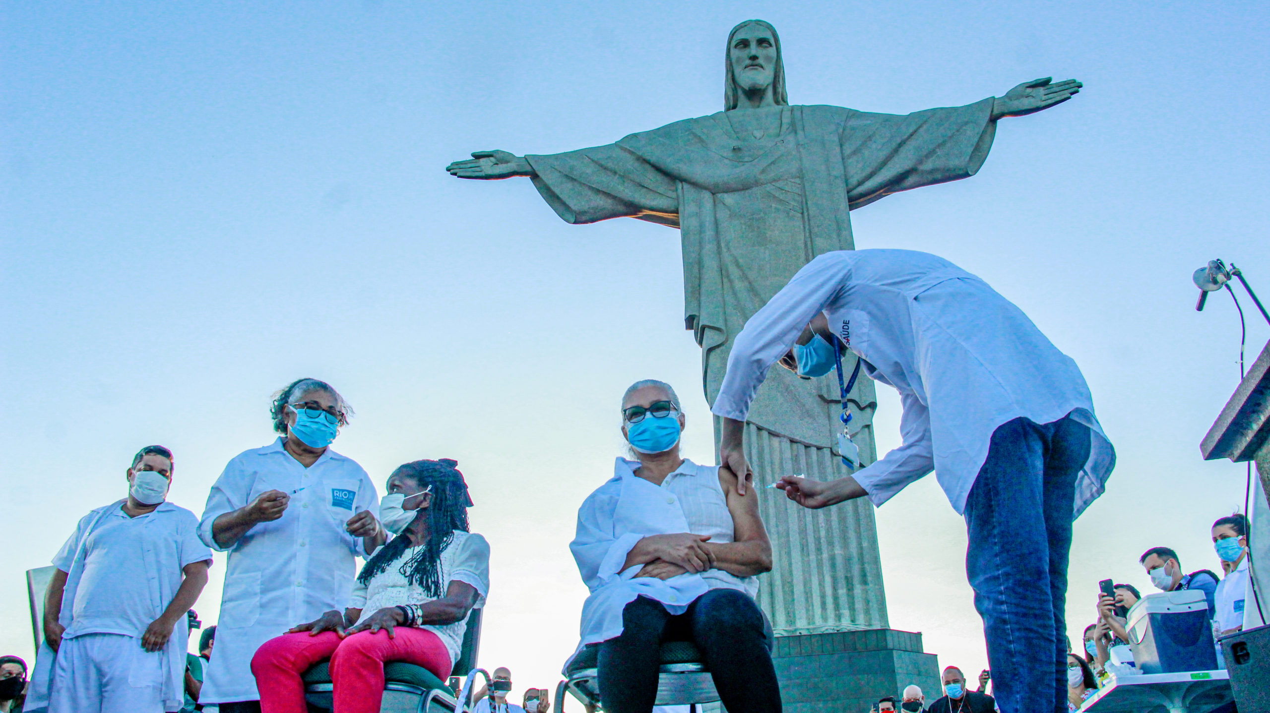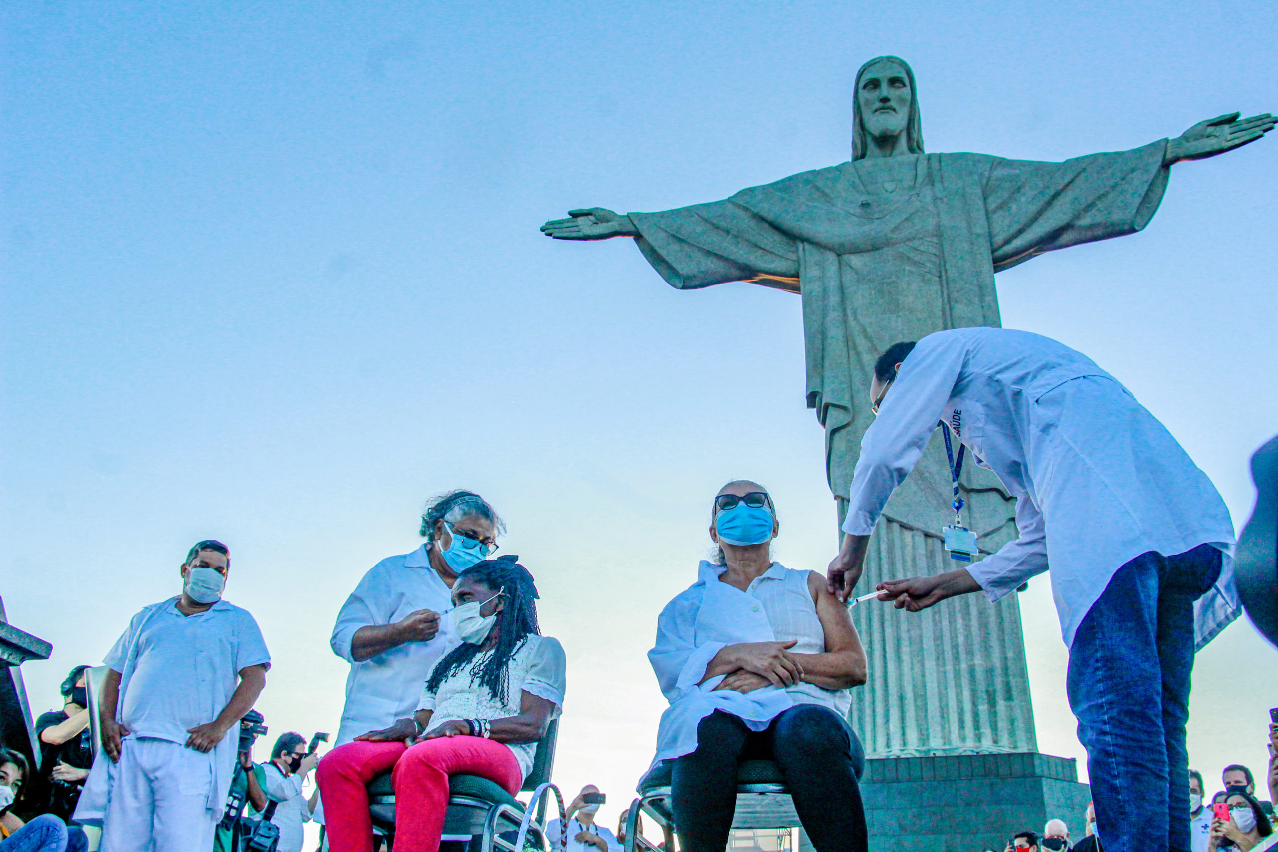 Dulcineia da Silva Lopes, de 59 anos e Terezinha da Conceição, de 80 anos, foram vacinadas aos pés do Cristo Redentor