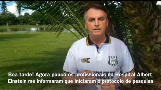 O presidente da República, Jair Bolsonaro, divulgou na tarde deste sábado (21) que profissionais do Hospital Albert Einsten deram início ao protocolo de pesquisa para avaliar a eficácia do uso de medicamentos à base de cloroquina no tratamento de pessoas infectadas pelo novo coronavírus.