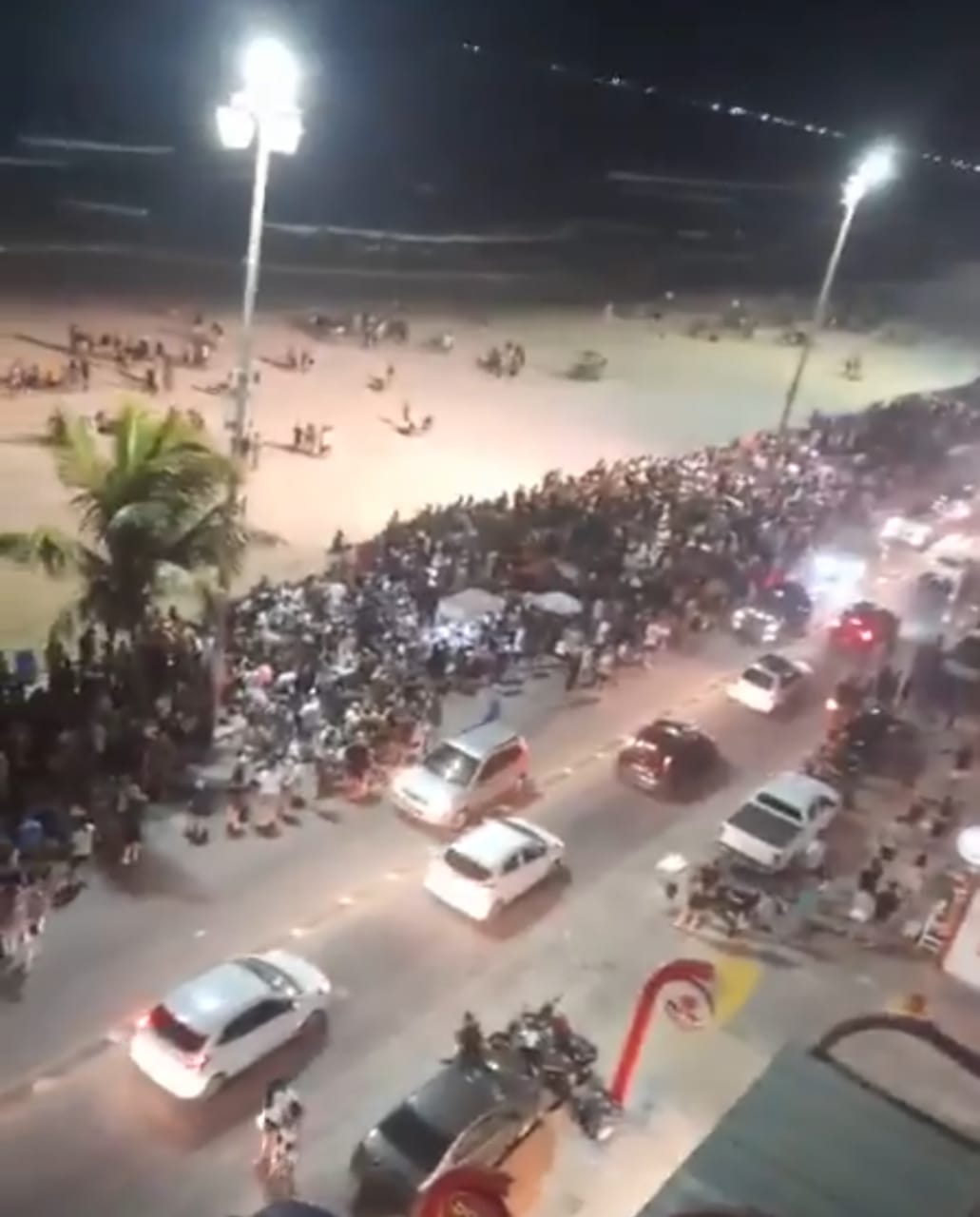 Nem a decisão da prefeitura de suspender a tradicional queima de fogos, nas principais praias do município foi capaz de evitar as aglomerações ao longa da faixa de areia.