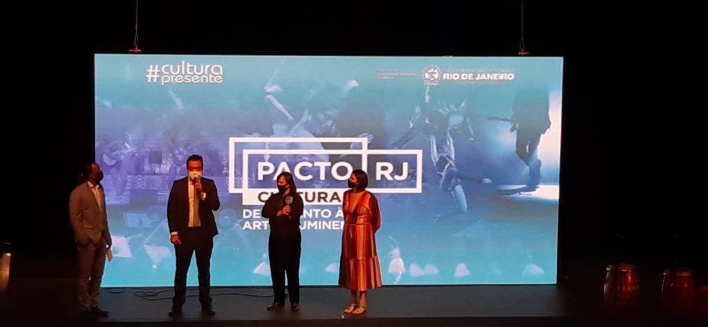O Governador Cláudio Castro e a Secretária de Estado de Cultura, Danielle Barros, lançaram, nesta sexta-feira, no Teatro João Caetano, no centro da cidade, o Pacto Cultural RJ, de fomento à Arte. Segundo a secretária, três mil projetos já vão ser contemplados no edital que vai ser publicado na próxima segunda-feira.