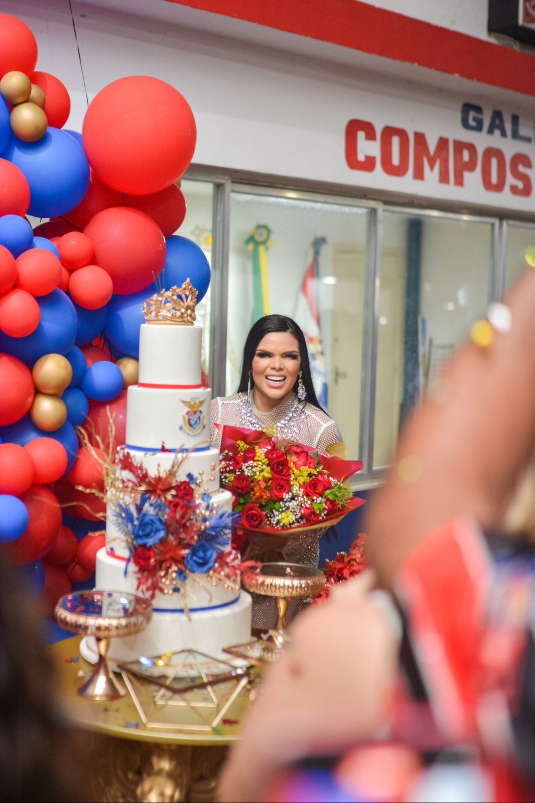 Logo depois de dar um show de samba no pé do início ao fim do ensaio, ela foi surpreendida com uma festa de aniversário organizada pelos componentes da escola. Cerveja, refrigerante, água, churrasco, pipoca, salgadinhos e um bolo de seis andares com uma coroa, foram uma das iguarias servidas na comemoração: