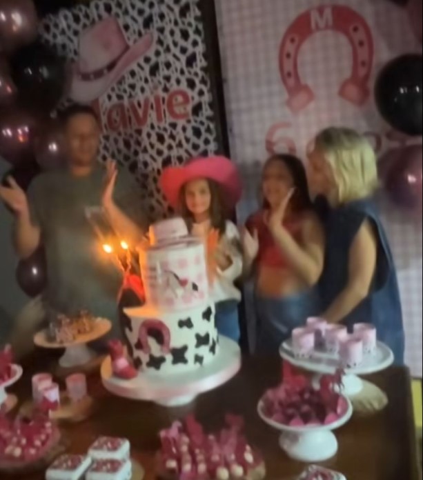 “Temos aqui nossa boiadeira maravilhosa, vamos comemorar o aniversário dela, que é dia 6, mas vamos comemorar hoje e ela quer o tema de Ana Castela, boiadeira”, disse.