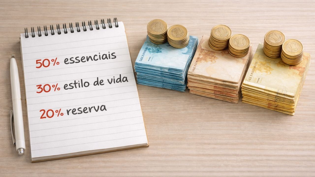Os 50% são destinados às despesas essenciais, como moradia, alimentação e contas fixas. Já os 30% ficam para gastos variáveis, ligados ao estilo de vida. Por fim, os 20% são reservados para poupança, investimentos e construção de uma reserva de emergência.