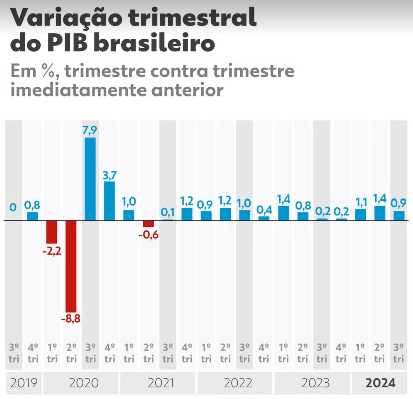 Em 2024, a economia brasileira experimentou um crescimento notável, destacando-se no contexto global. De acordo com o Fundo Monetário Internacional (FMI), o Produto Interno Bruto (PIB) do Brasil registrou um aumento de 0,9% no primeiro trimestre do ano, reforçando sua posição na hierarquia das maiores economias mundiais.