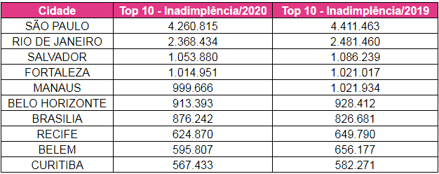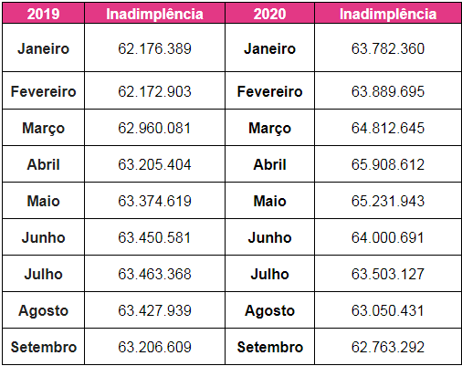 Em setembro, a capital paulista conta com mais de 4.2 milhões inadimplentes, 3% a menos do que o mesmo período no ano passado, quando registrou 4.4 milhões. Já em todo o estado de São Paulo, a inadimplência chega a 15 milhões. Um levantamento realizado pela própria Serasa mostra os impactos na taxa de inadimplência no Brasil em 2020 em comparação com o ano passado: