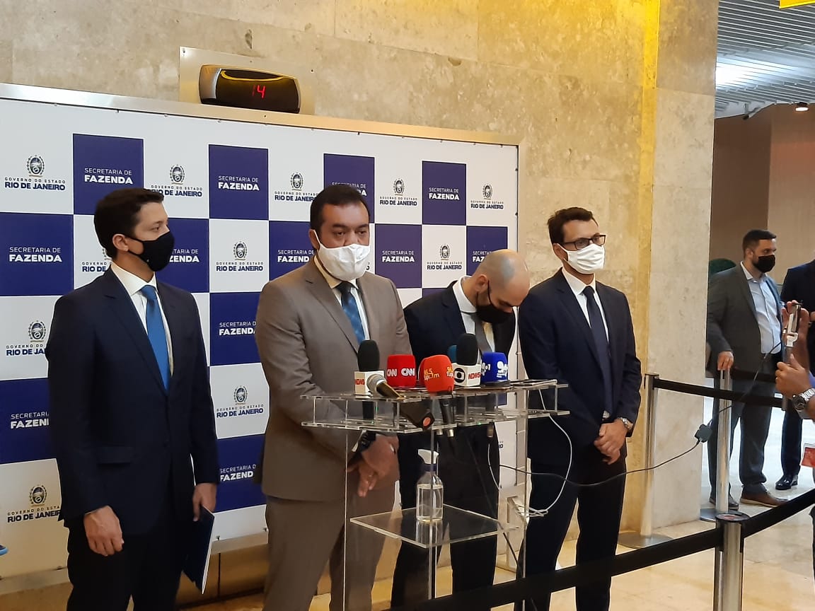 O governador Cláudio Castro, durante coletiva nesta quarta-feira, junto com o Secretário de Estado de Fazenda, Guilherme Mercês, anunciou o pagamento de três salários nos próximos 30 dias. O primeiro vai ser o do mês de outubro, nesta sexta-feira, dia 13. Ele também antecipou as datas de pagamento do salário de novembro e do 13º dos servidores do estado.