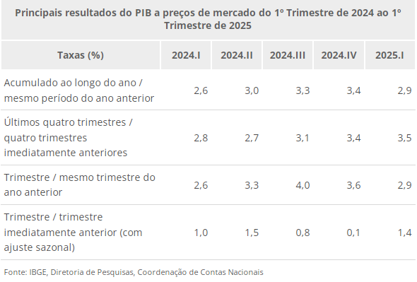 PIB cresce 1,4% no primeiro trimestre de 2025