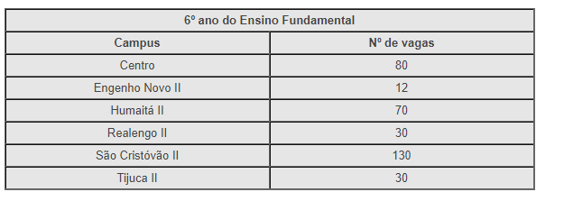 Para os candidatos ao 6º ano, a seleção será por meio de provas objetivas de Português e Matemática e de Redação, aplicadas em 22 de outubro. Os conteúdos programáticos das provas de Português e Matemática.