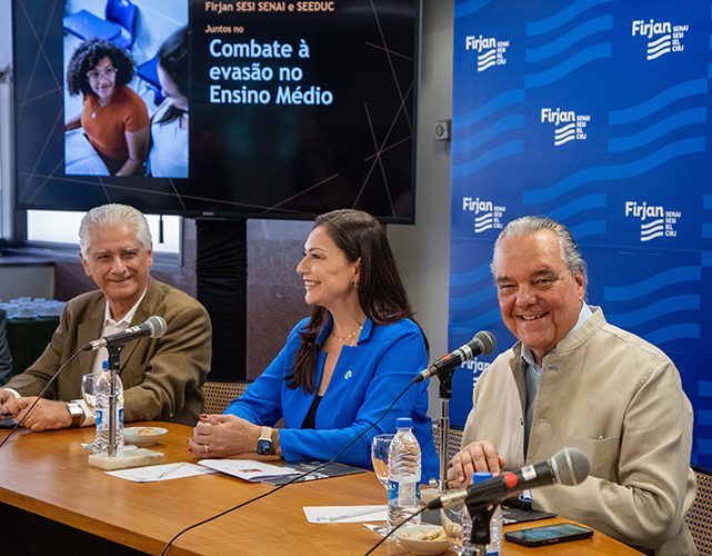 O ensino médio tem sido o foco de atuação da Firjan SESI nas últimas décadas. Pesquisa “Combate à Evasão no Ensino Médio: desafios e oportunidades”, lançada no ano passado em parceria com o PNUD, trouxe um amplo painel de dados que mostra que meio milhão de jovens acima de 16 anos abandonam a escola a cada ano. Como desdobramento, Eduardo Eugenio Gouvêa Vieira, presidente da Firjan, e Roberta Barreto, secretária estadual de Educação do Rio de Janeiro, assinaram um pacto para combater essa tragédia silenciosa na rede pública de ensino do estado do Rio. A cerimônia aconteceu na sede da federação, Centro do Rio.