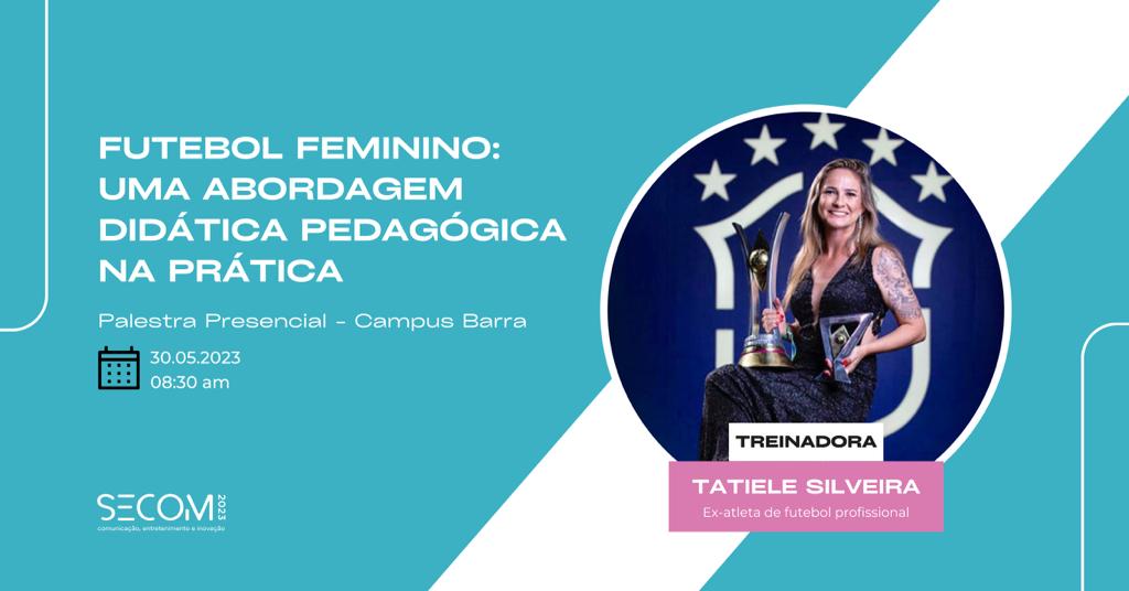 Diretamente do Campus UVA Barra, no dia 30 de maio, às 8h15, acontecerá a palestra “Futebol Feminino: uma abordagem didática pedagógica na prática”, com foco na valorização da mulher no futebol como porta de entrada no mundo do esporte e gerador de oportunidades para meninas e mulheres mundo afora. Ministrada pela professora Tatiele Silveira, ex-atleta de futebol profissional por dez anos, a aula aberta irá apresentar diferentes exemplos de jogadoras e treinadoras que lideram a luta pela igualdade de gênero no meio esportivo.