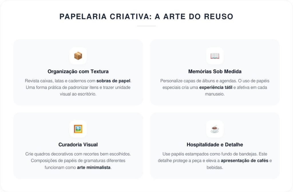 Outra aplicação frequente do papel de parede vintage está em capas de livros, cadernos, presentes e pequenos cartões. Volumes revestidos podem compor mesas de centro e aparadores, ajudando a organizar a paleta de cores do ambiente, enquanto sobras menores viram embalagens de presente, marcadores de página e etiquetas, reforçando uma decoração sustentável com baixo custo e aparência mais cuidada.