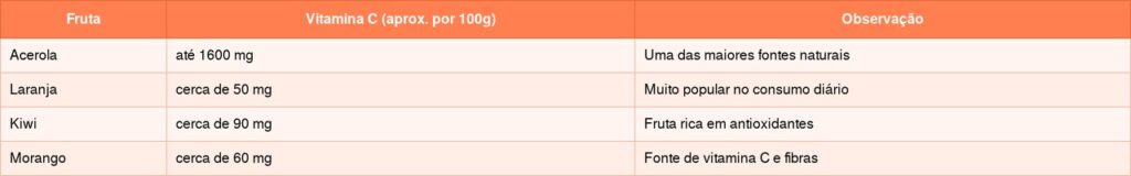 Comparação nutricional entre frutas ricas em vitamina C