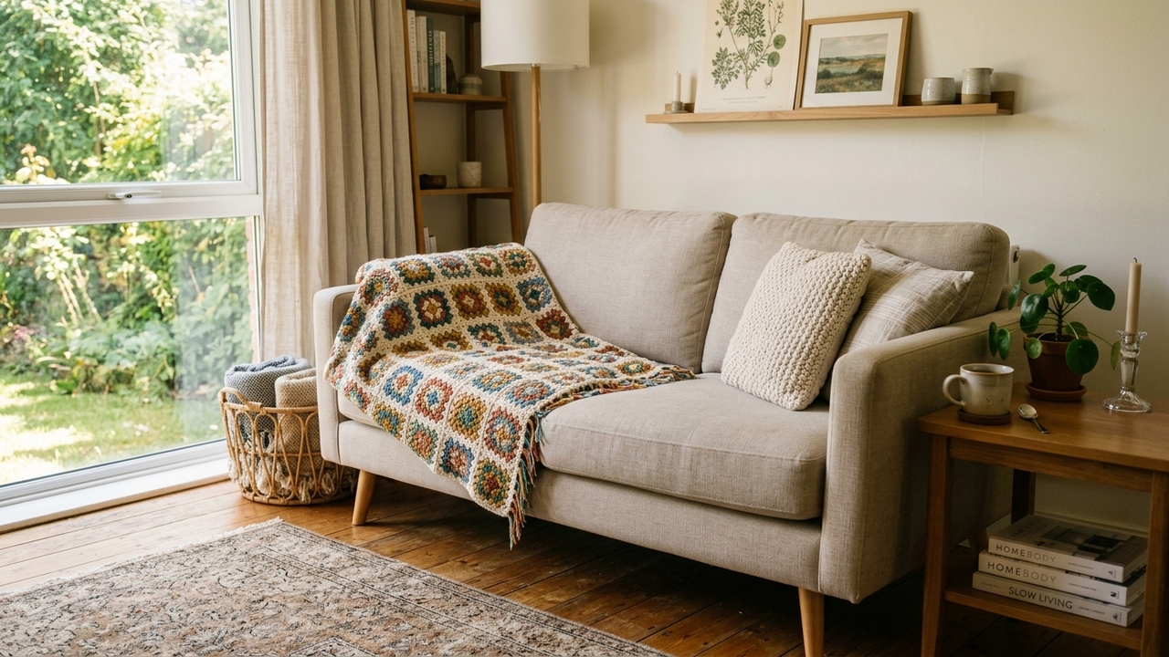 A manta de crochê para sofá que deixa a sala mais aconchegante em poucos minutos
