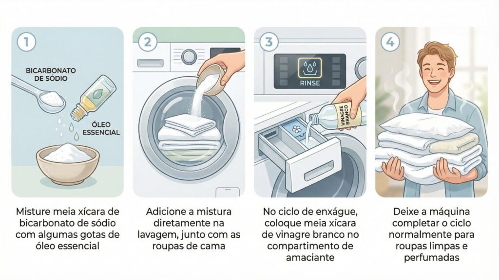 Quais são os passos essenciais para lavar roupas de cama com misturinha caseira