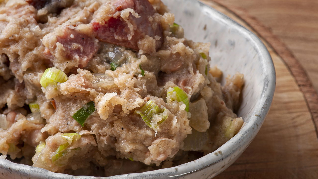 A atenção ao adicionar farinha é crucial, pois o exagero pode comprometer a cremosidade. Tanto o feijão carioca quanto o preto e o roxo podem ser usados, dependendo da preferência ou disponibilidade. O prato pode ser armazenado em recipiente fechado por até três dias na geladeira; na hora de reaquecer, basta adicionar um pouco de água para retomar a textura original.