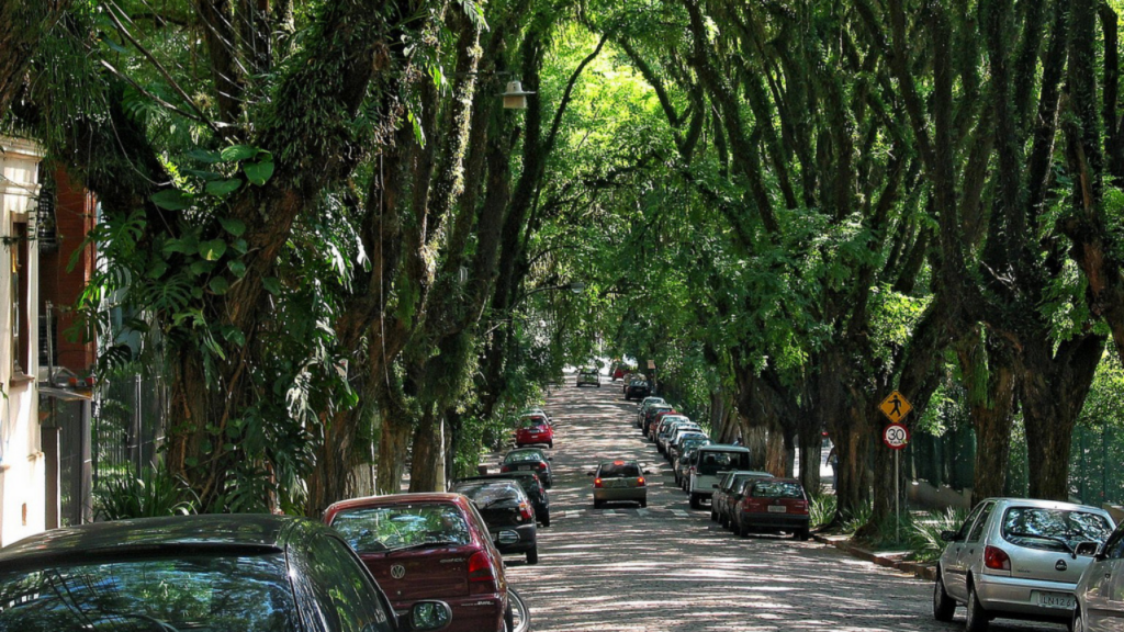 No bairro Independência, no coração de Porto Alegre, uma rua de 500 metros coberta por mais de 150 tipuanas cria um túnel verde tão denso que o sol precisa pedir licença para passar. A Rua Gonçalo de Carvalho foi apelidada de “a rua mais bonita do mundo” por um biólogo português que viu fotos na internet e não acreditou que aquilo ficava numa capital brasileira. O título pegou, viralizou e hoje atrai fotógrafos, casais e urbanistas do mundo inteiro.