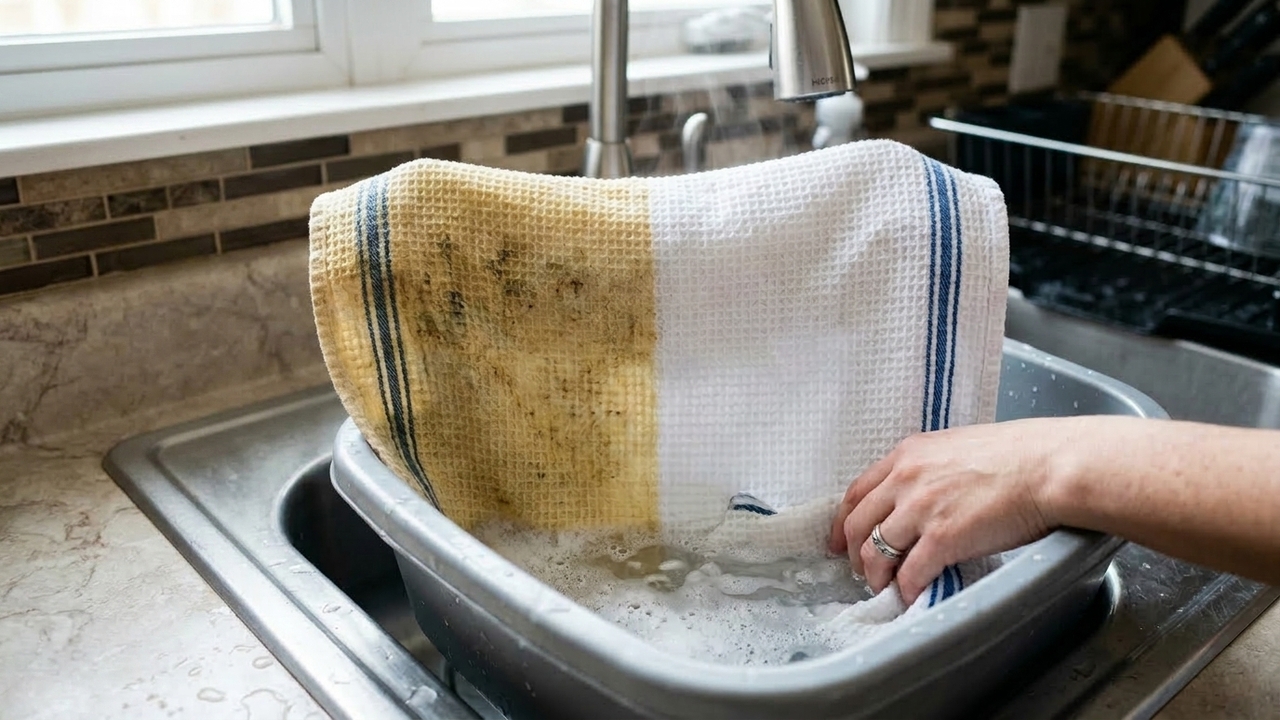 Os panos de prato brancos costumam perder o aspecto limpo muito antes do esperado, mesmo quando são lavados com frequência. Gordura, café, molho, frutas e umidade deixam o tecido amarelado, duro e com cheiro estranho. A boa notícia é que um método simples com ingredientes de cozinha pode ajudar a clarear as peças sem apelar para produtos agressivos.