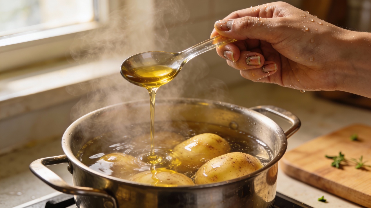 Cozinhar batatas parece simples, mas pequenos detalhes fazem muita diferença no tempo e no resultado final. Um truque pouco conhecido, usado em muitas cozinhas, consiste em adicionar apenas uma colher de óleo na água fervente. O efeito é surpreendente: as batatas amolecem mais rápido, a fervura fica mais controlada e a textura final agrada no primeiro garfo.