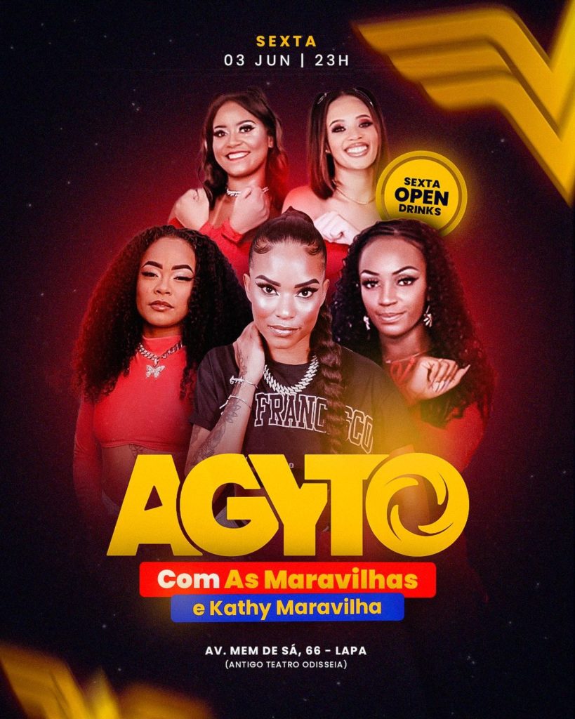 As Maravilhas, festa ‘DJ Solta A Beats’, festa “Brejo” e DJ Katy Maravilha são algumas das atrações que a nova casa favorita do Rio, a “Agyto Lapa”, vai trazer a partir desta sexta-feira (3). O espaço que fica no antigo Teatro Odisseia, é o mais queridinho da região e promete trazer muita música pop, funk, sertanejo, música nacional e muito mais.