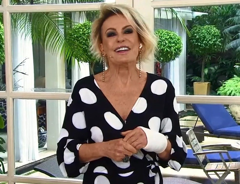 Ana Maria Braga apareceu no Mais Você, desta segunda-feira (07), com a mão esquerda enfaixada após passar por uma cirurgia no fim de semana em função da Síndrome do Túnel do Carpo.