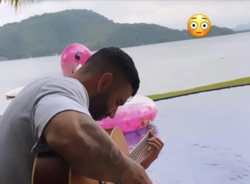 A modelo publicou um vídeo, no Stories do Instagram, do cantor tocando violão ao lado de amigos.
