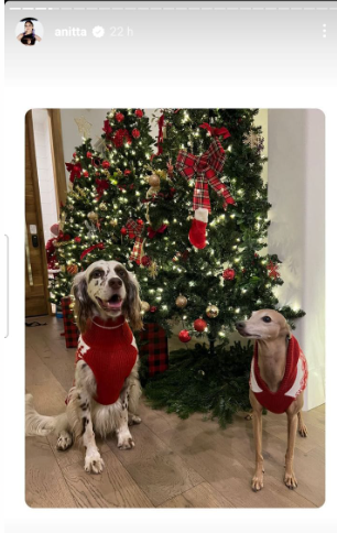 Anitta está em Orlando, nos Estados Unidos, contando os minutos para as festividades de Natal, e aproveitou para mostrar aos fãs detalhes da decoração natalina da mansão onde está hospedada. Pelos stories do seu perfil oficial no Instagram, a cantora mostrou que todos os cômodos da mansão luxuosa já estão no clima de natal: sala, espaço de jogos, piscina e até mesmo os cachorros de estimação da Poderosa entraram no clima natalino.