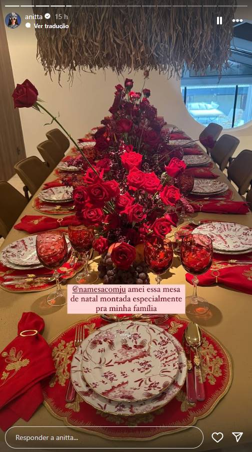 Para criar uma atmosfera natalina perfeita, Anitta escolheu trabalhar com a renomada decoradora Juliana Souza, da empresa Na Mesa. O resultado é uma mesa que reflete tradição e elegância, adornada com flores vermelhas, remetendo às cores clássicas do Natal. Esta atenção aos detalhes garante que a celebração na mansão da cantora será tanto um deleite visual quanto um evento festivo inesquecível.