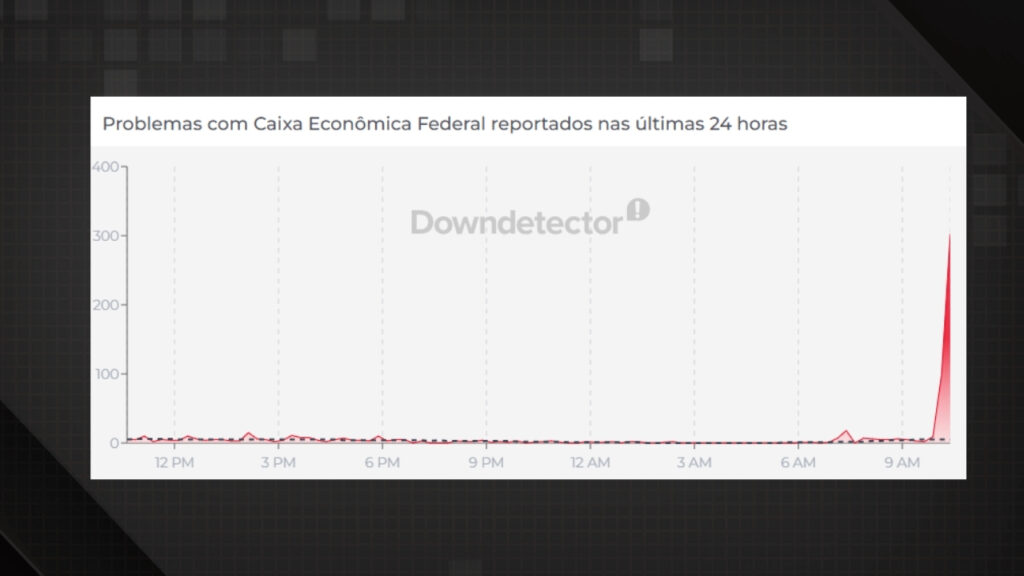A Caixa Econômica Federal registrou um pico de reclamações sobre instabilidade em seus serviços digitais nesta quarta-feira (1º). Segundo o Downdetector, plataforma online que monitora o status de sites, mais de 300 usuários relataram problemas no aplicativo da instituição financeira estatal desde as 9h, afetando transações cruciais.