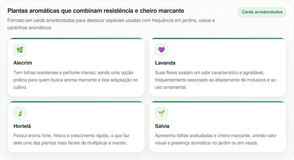 Outra tática inteligente é usar o próprio paisagismo como escudo. Algumas espécies aromáticas atuam como repelentes naturais quando plantadas próximas a canteiros vulneráveis: