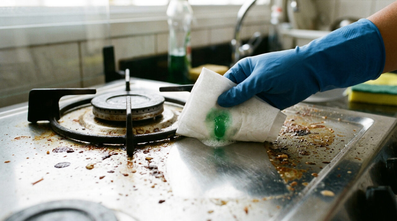 A gordura do fogão é um dos problemas de limpeza mais frustrantes da cozinha. Ela gruda, endurece e resiste até às esponjas mais abrasivas. Mas existe um método simples, com apenas uma gota de um ingrediente certo aplicada no lenço umedecido, que dissolve essa sujeira em segundos, sem esforço e sem arranhar nenhuma superfície.