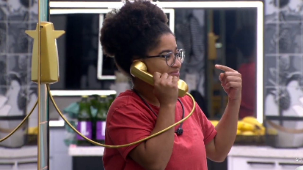 Participante do Pipoca é instruída a pegar uma pulseira após atender o Big Fone