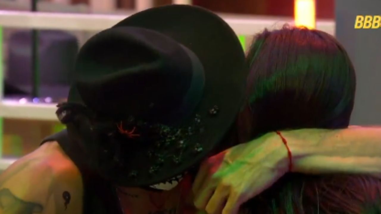 A aproximação teve início ainda durante a comemoração, quando Jonas ajudou Jordana a colocar a máscara de esqueleto de sua fantasia. “Você já pegou um esqueleto?”, perguntou ele. A advogada devolveu na brincadeira: “Um esqueleto com um pano na boca, como que beija o esqueleto?”